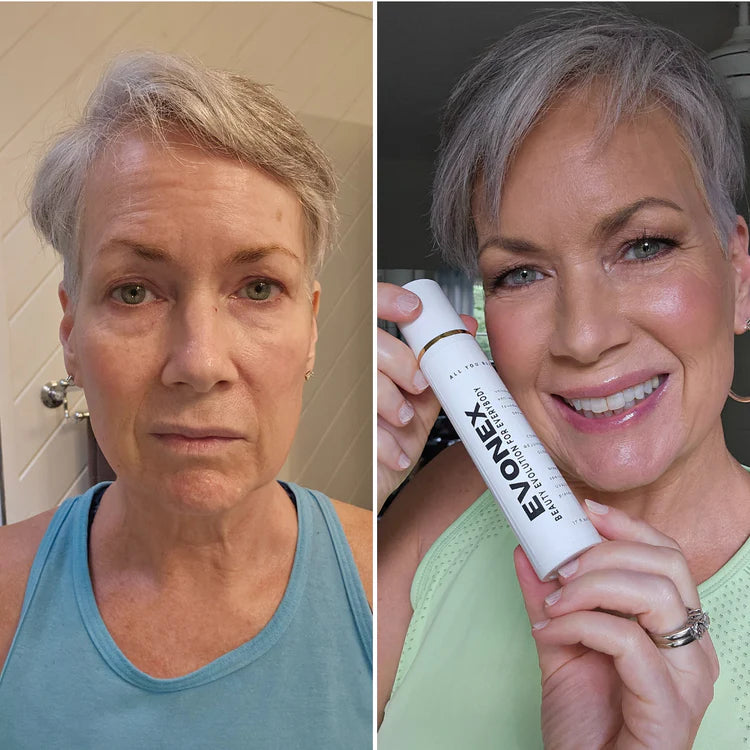 Con el uso continuo, Evonex® transforma tu rutina en un tratamiento de cuidado: en 2 semanas la piel luce más luminosa, en 4 semanas las líneas de expresión se suavizan y en 6 semanas tu rostro refleja firmeza.